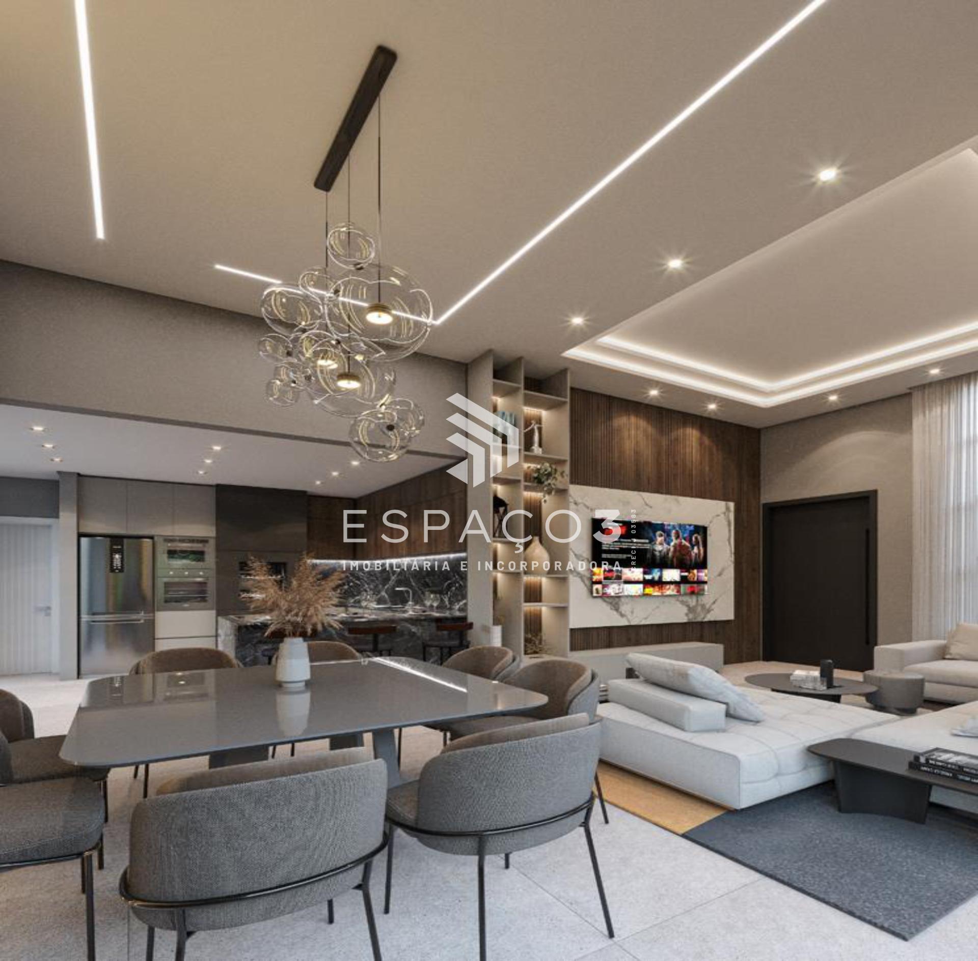Sala ampla com integração à cozinha e área gourmet